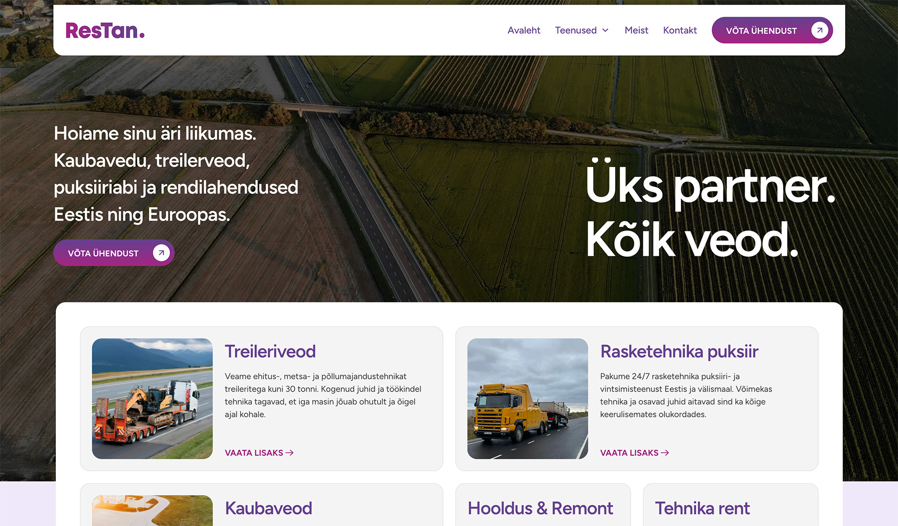 Valmistame nutika ja pilkupüüdva veebilehe võttes arvesse teie tegevusala, kliendiprofiili ja vajadusi. Lehel on moodne disain ning seda on lihtne kasutada.
